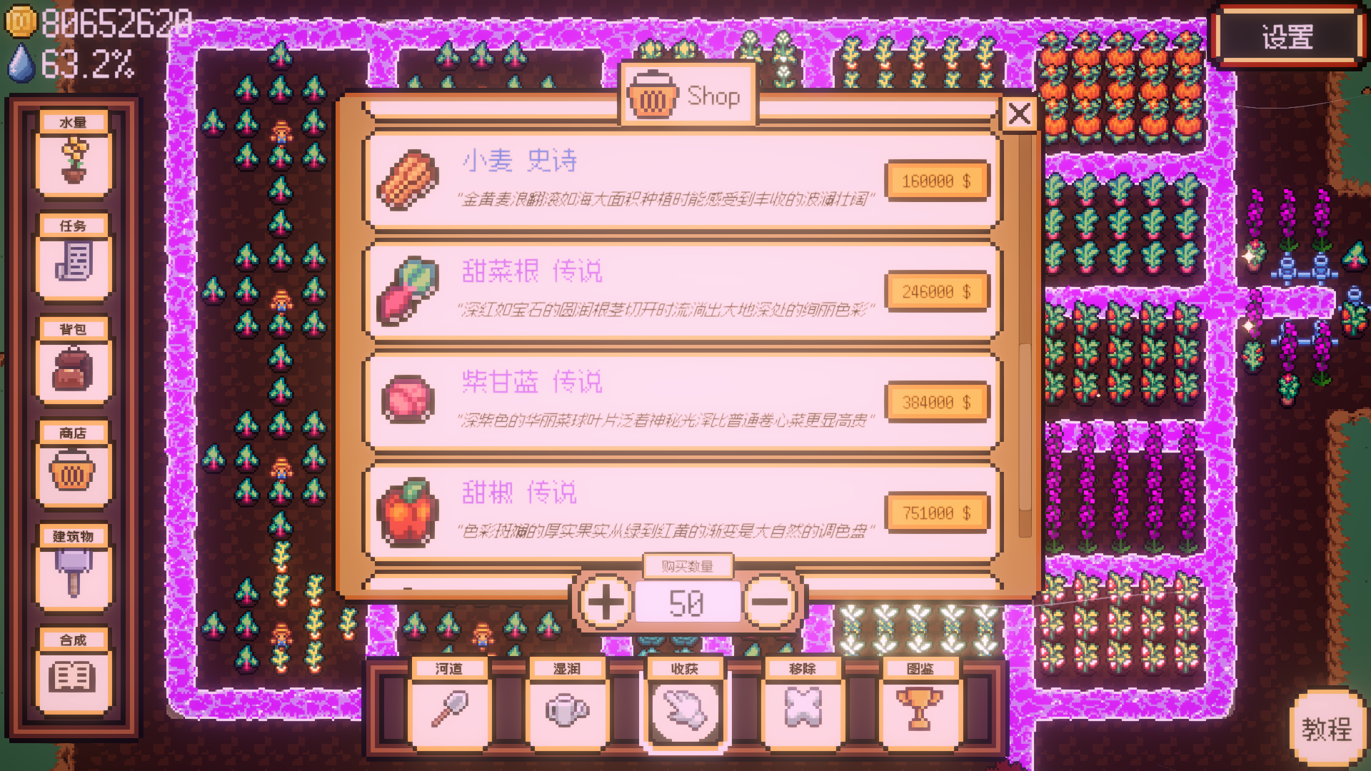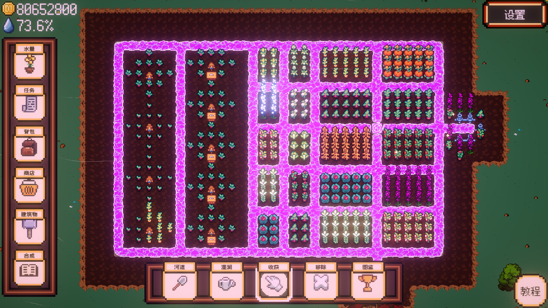 - Mutation System: Crops mutate randomly during growth or can be fused to create new species.