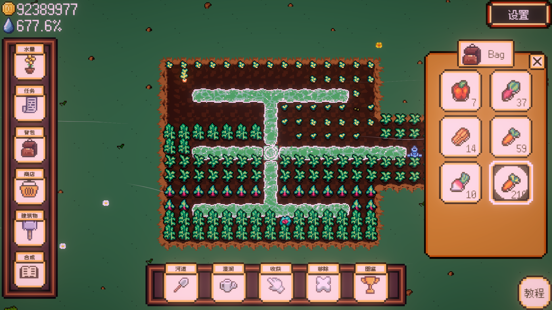 This is a 2D Pixel Farming Sim focused on Planting Loops, Genetics, and Automation. Although it is still in the prototype stage, the core loop of planting, automating, and upgrading is fully playable. (I have also included multi-language support!)